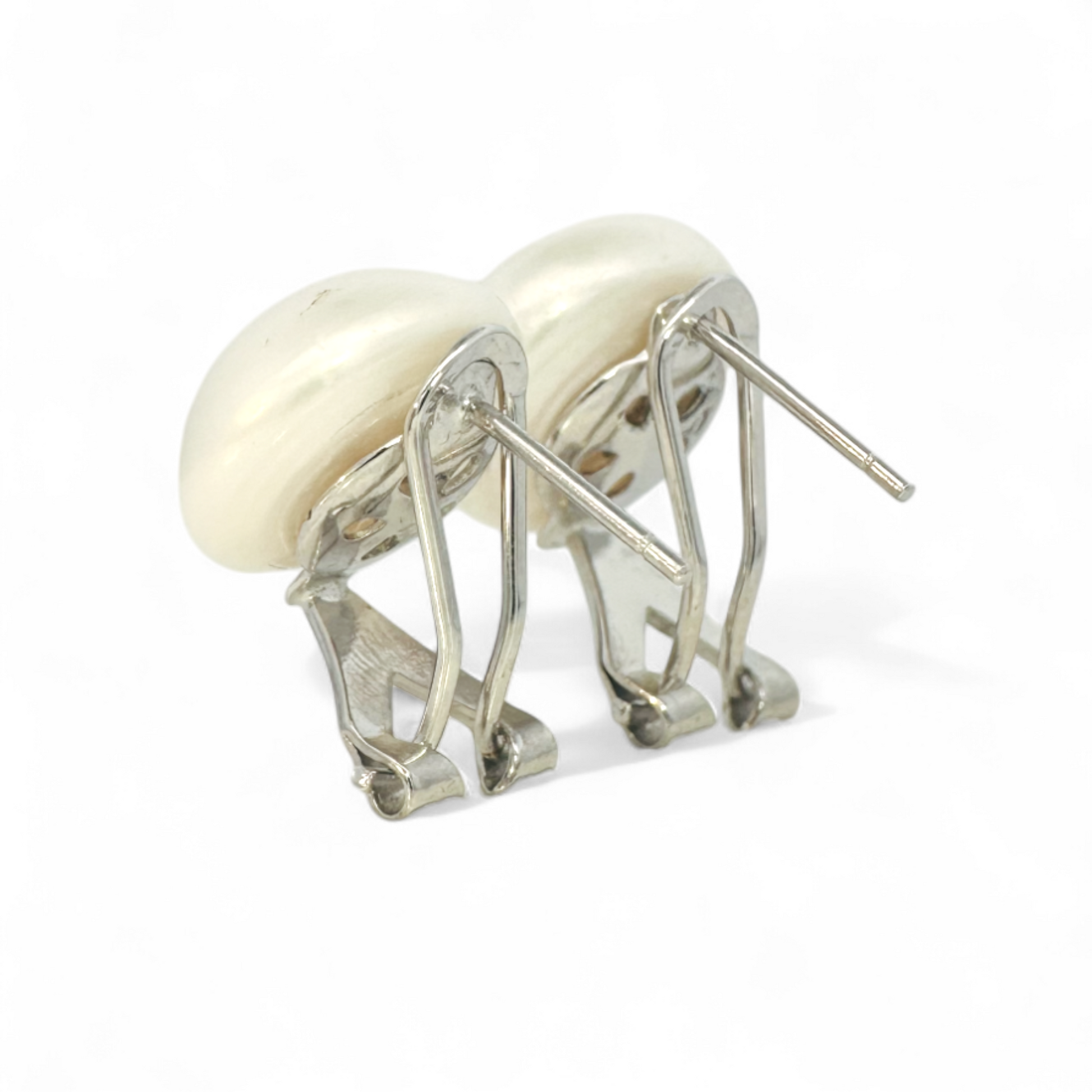 Aros de perlas de 11 a 12 mm con cierre omega, elaborados en plata 925. Elegancia y seguridad en una joya clásica que realza cualquier look.