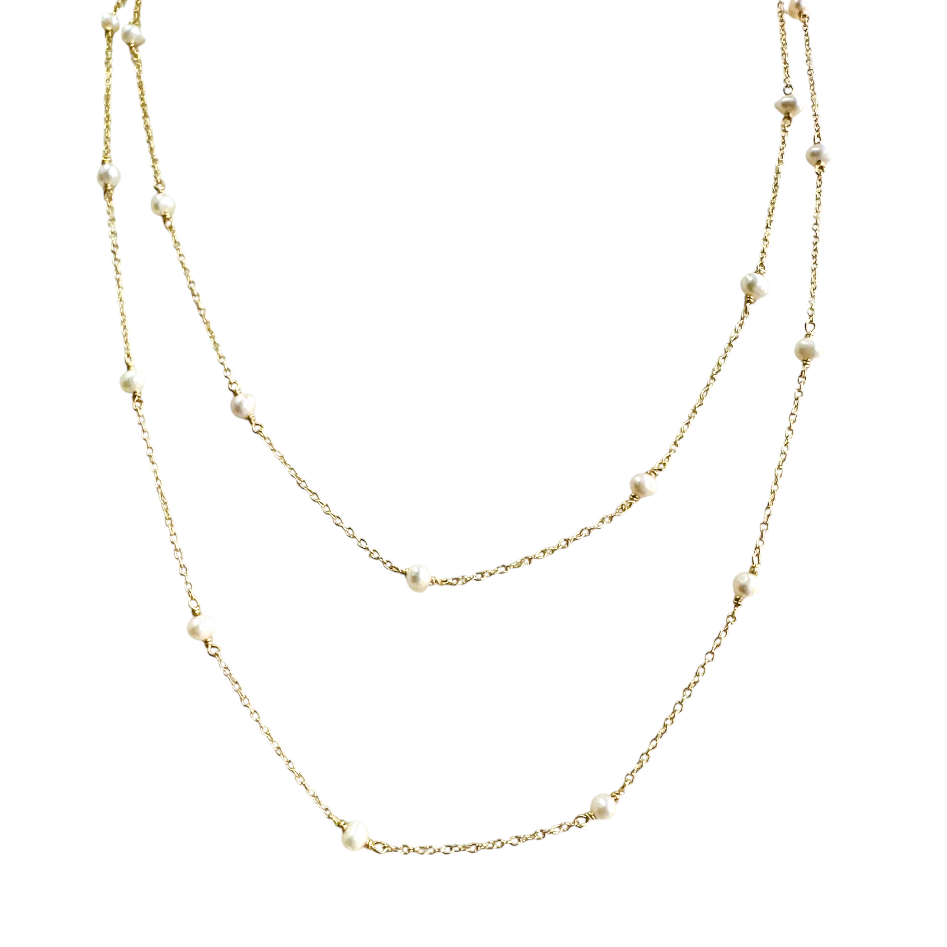 Collar de perlas en cadena de plata 925 bañada en oro.