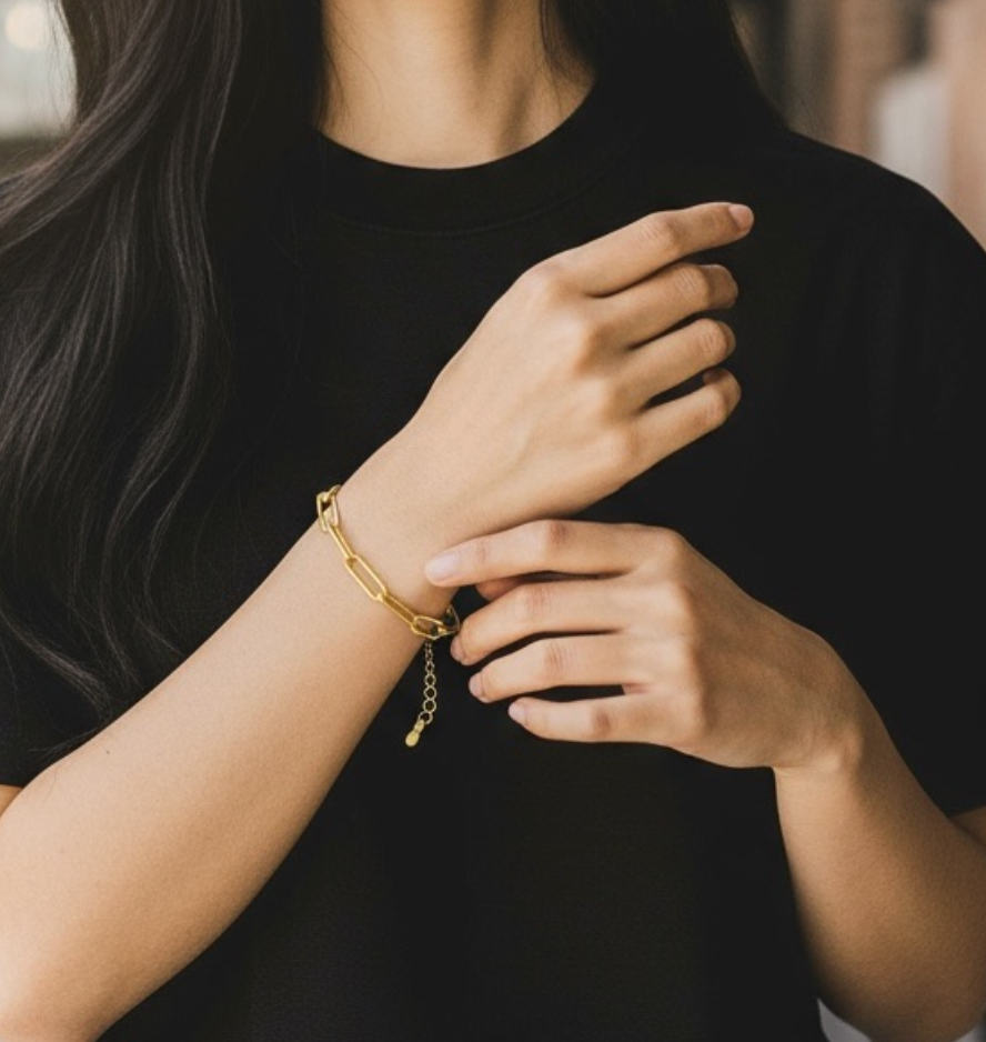 Pulsera Clip confeccionada en plata 925 con baño de oro de 18K, ajustable de 15 a 19 cm. Una combinación perfecta de elegancia y durabilidad que realza tu estilo con un toque sofisticado.