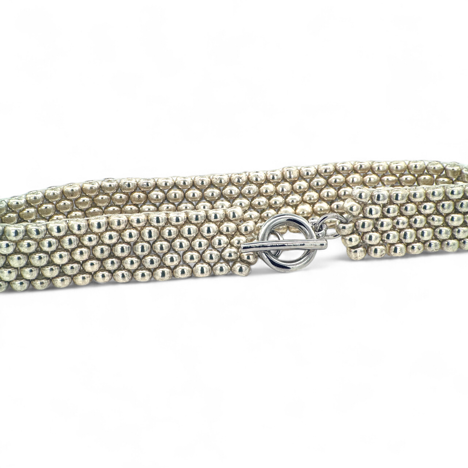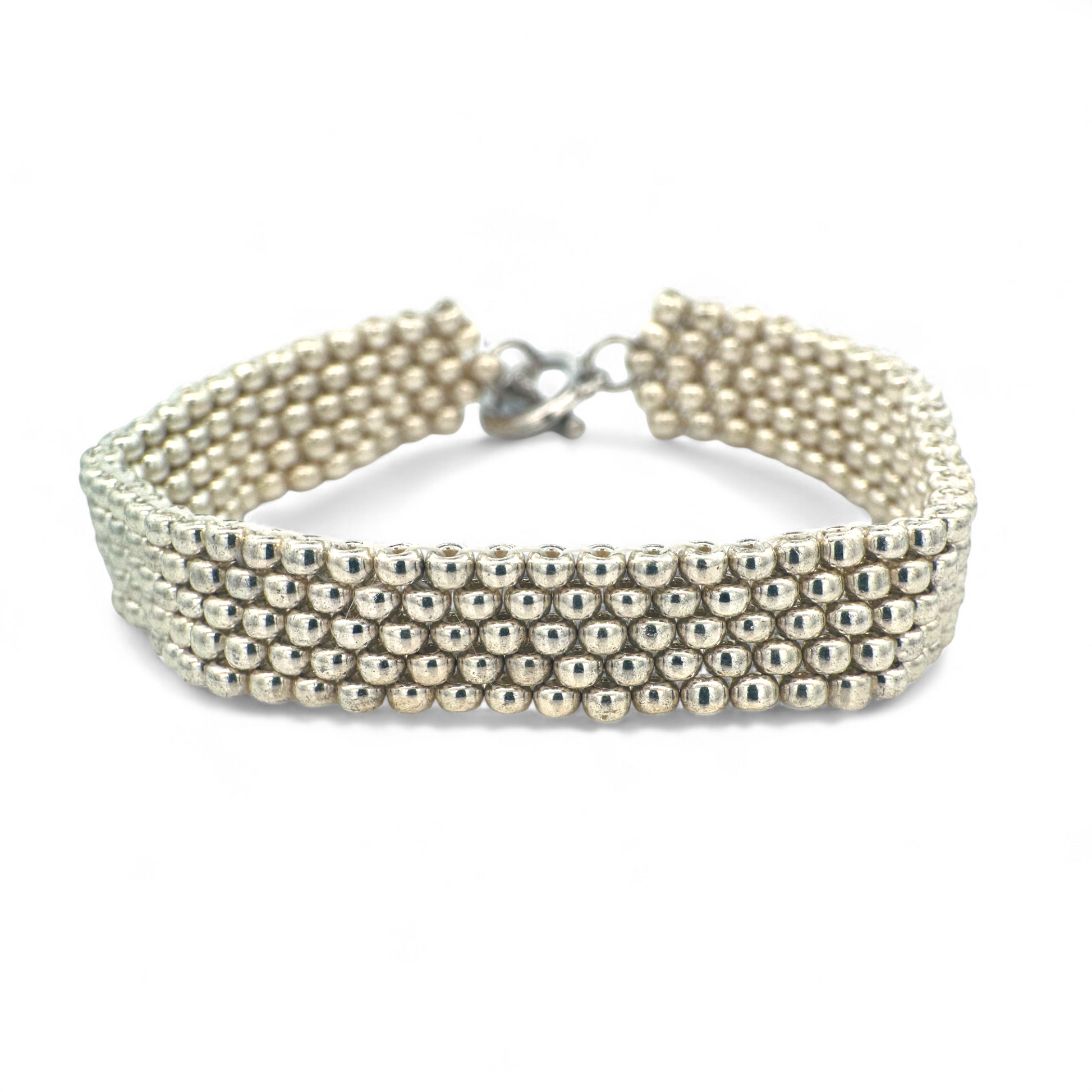 Descubre la elegancia única de esta pulsera tejida a mano con cuentas Miyuki plateadas, perfecta para complementar tu estilo en un tamaño ideal de 18 cm.